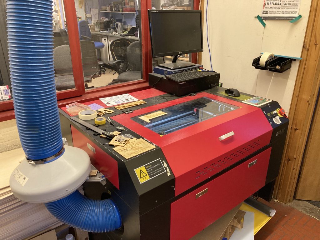 Cardiff Makerspace is a small industrial unit packed with tools and equipment that people are unlikely to have at home! For comfort we have seating and kitchen space for teas/coffees or microwaving some snacks. For projects; an electronics work area, a laser-cutting space, multiple computers, and a large workshop with workbenches and larger tools. We have an internet connection that you can use and a small number of drinks/sweets for sale.